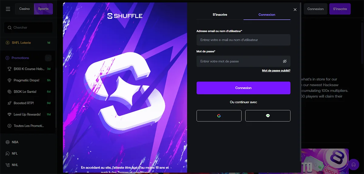 Assistance et support pour le login Shuffle Casino