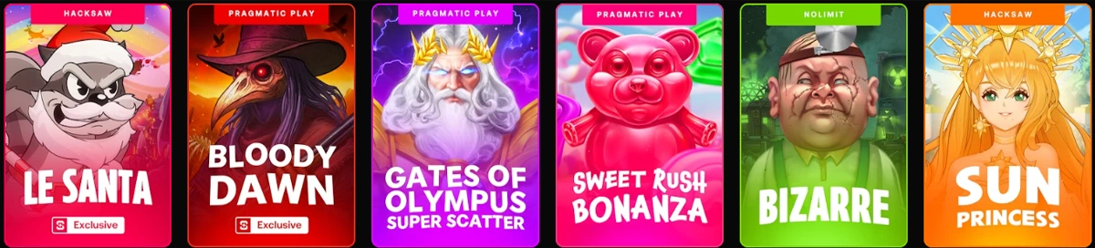 Play'n GO enrichit notre catalogue avec Book of Dead et ses fonctionnalités de tours gratuits. Nous proposons également les créations innovantes de Nolimit City et Hacksaw Gaming, reconnues pour leurs mécaniques uniques et leurs jackpots attractifs.