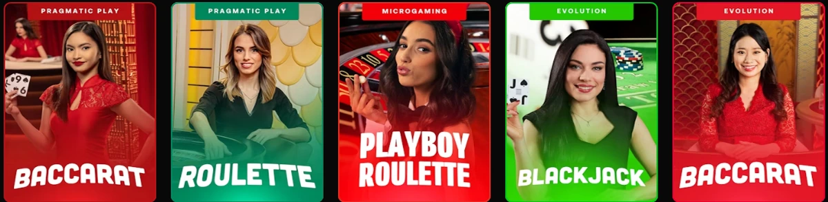 Notre section de jeux de table combine les versions RNG traditionnelles et les expériences live casino avec croupiers en direct. Nous collaborons avec Evolution Gaming, leader mondial des jeux en direct, pour offrir des tables de roulette, blackjack et baccarat authentiques.
