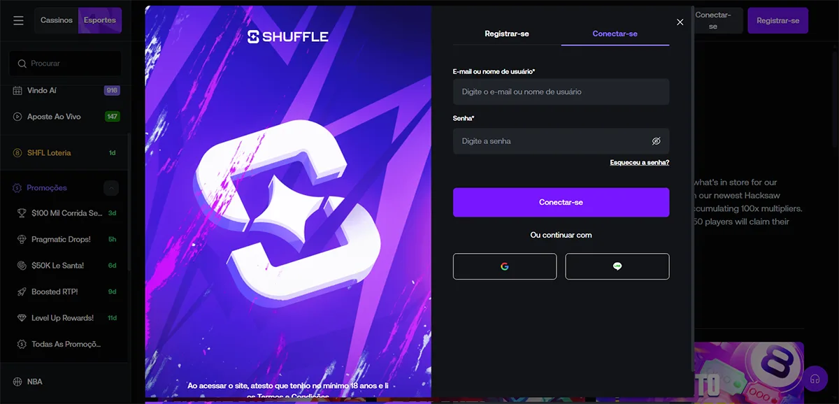 Como Fazer Login no Shuffle Casino